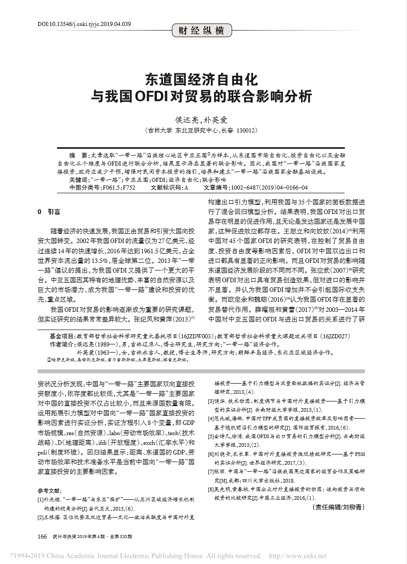 高水平论文10——东道国经济自由化与我国OFDI对贸易的联合影响分析