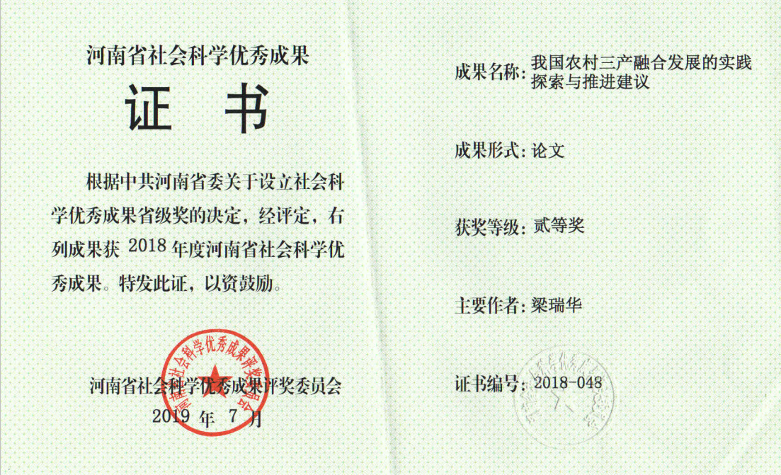 省部级奖2——我国农村三产融合发展的实践探索与推进建议