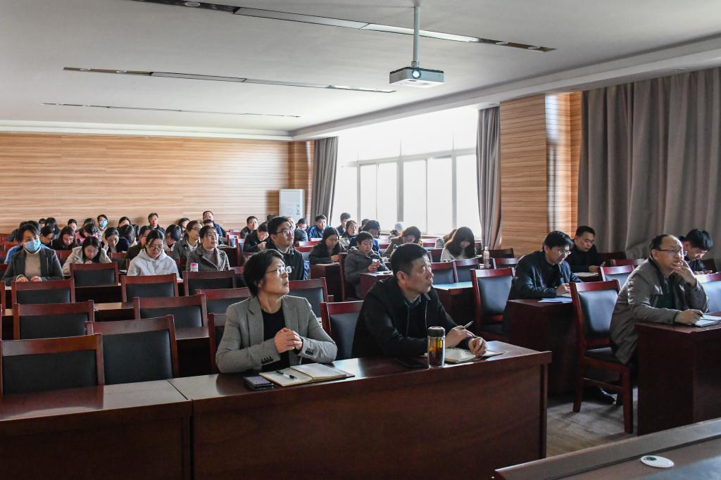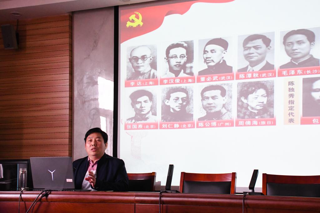 李海涛以《中国共产党为什么能》为题,从中国共产党的发展史讲起,讲述了中国共产党从小到大、由弱到强,从一叶扁舟到巍巍巨轮的过程。之后又从五个方面具体阐述了中国共产党为什么“能”:一是有科学的理论指导,中国共产党高举马克思主义旗帜,不断开辟理论发展新境界,始终坚持思想建党、理论强党才能够完成艰巨的任务;二是有坚定的理想信念,要有不畏艰难、不怕牺牲的信念和意志;三是有强大的组织优势,组织体系使全党形成一个统一的整体,是中国共产党的强大优势;四是有坚实的群众基础,坚持人民利益至上,是中国共产党人坚守不变的价值理念;五是有彻底的自我革命,在进行社会革命的同时不断进行自我革命,是中国共产党不断从胜利走向新的胜利的关键。李海涛旁征博引、深入浅出的报告,将党史教育和现实问题分析联系在一起,让全体教职工通过报告深入学习了解中国共产党的百年历史发展历程和新时代发展观。